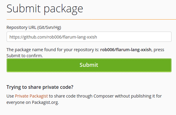 Now your language pack is ready to use - composer require command described in README of your package should install your extension. Just remember to tag new release after you made some changes in translations - by default Composer installs only releases, so your changes may be ignored until you create new release with them.