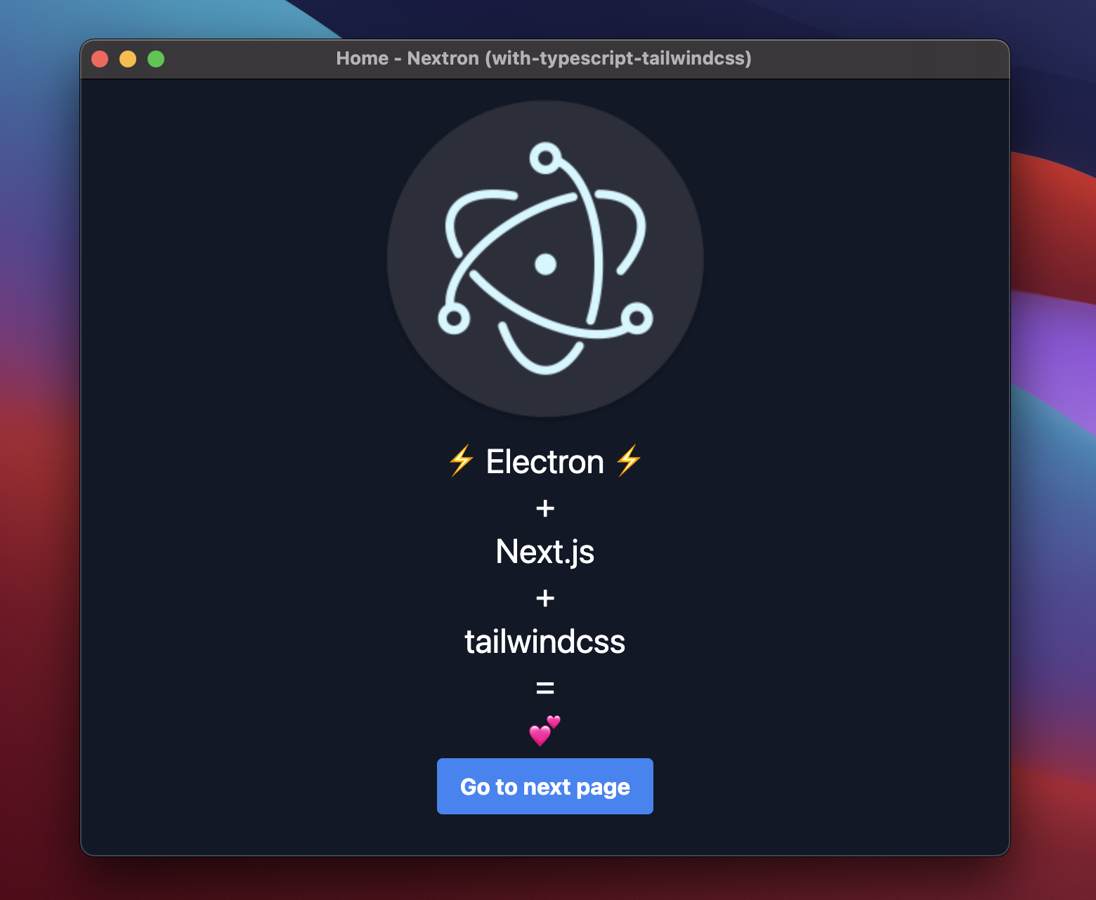 $ yarn create nextron-app MY_APP --example with-tailwindcss