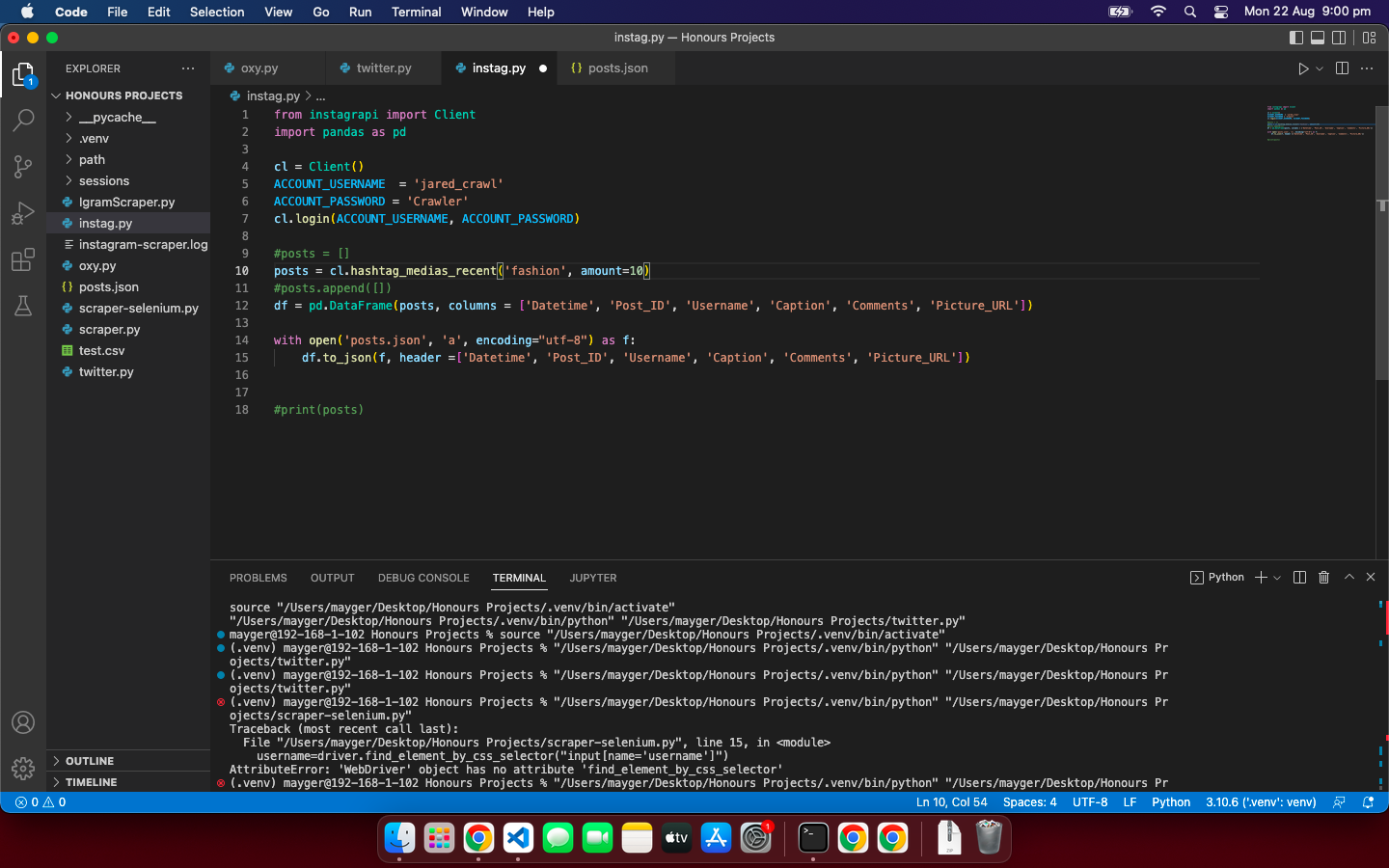 Trying to scrape posts, captions, and comments from specific hashtags and save the data in a .json but I'm not sure how to sort the data to just include the following; Datetime, Post_ID, Username, Caption, Comments, Picture