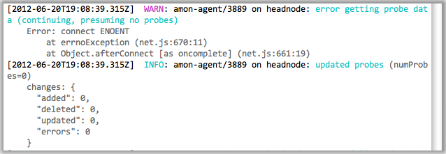 var bunyan = require('bunyan'); var log = bunyan.createLogger({name: 'play', level: 'debug'}); log.trace('this one does not emit'); log.debug('hi on debug'); // console.log log.info('hi on info'); // console.info log.warn('hi on warn'); // console.warn log.error('hi on error'); // console.error