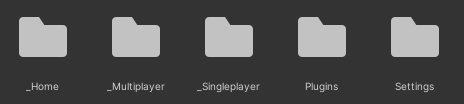 Three main folders mainly named: _Home, _Singleplayer, _Multiplayer