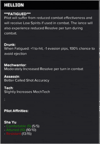 -Updated PilotQuirkManager.getPilotToolTip(), PilotQuirkManager.getRoninHiringHallDescription(), and PilotQuirkManager.getRegularHiringHallDescription() with length > 0 checks for Pilot Quirk names and descriptions