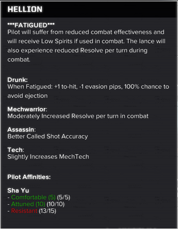 Current MechAffinity with legacy and MechAffinity pilot quirks and a "hidden" pilot quirk: