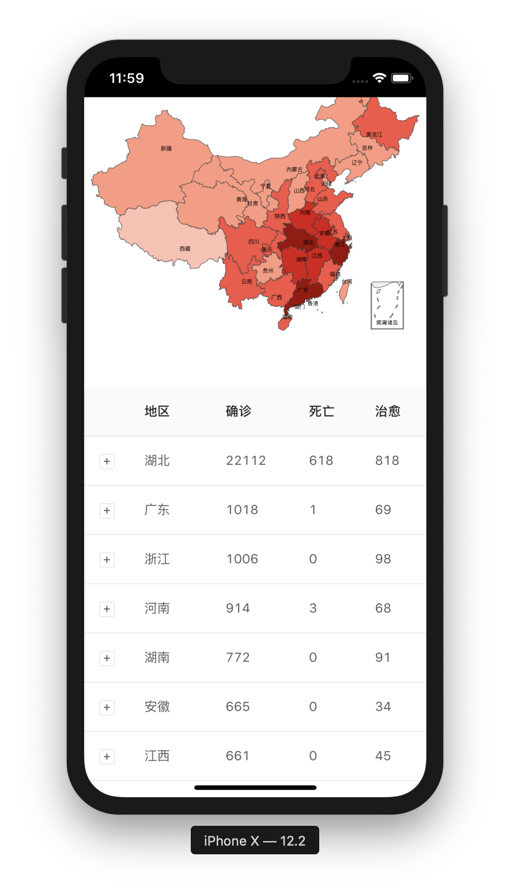 - 全国和各省市疫情地图及其详细信息查看